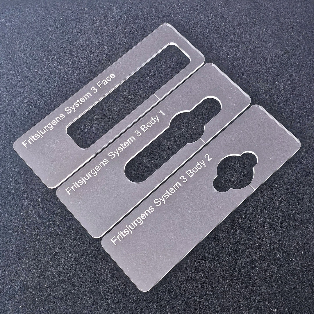 Fritsjurgens System 3 router jig templates for the quick and precise installation of both the system 1 and 1 bottom pivots.